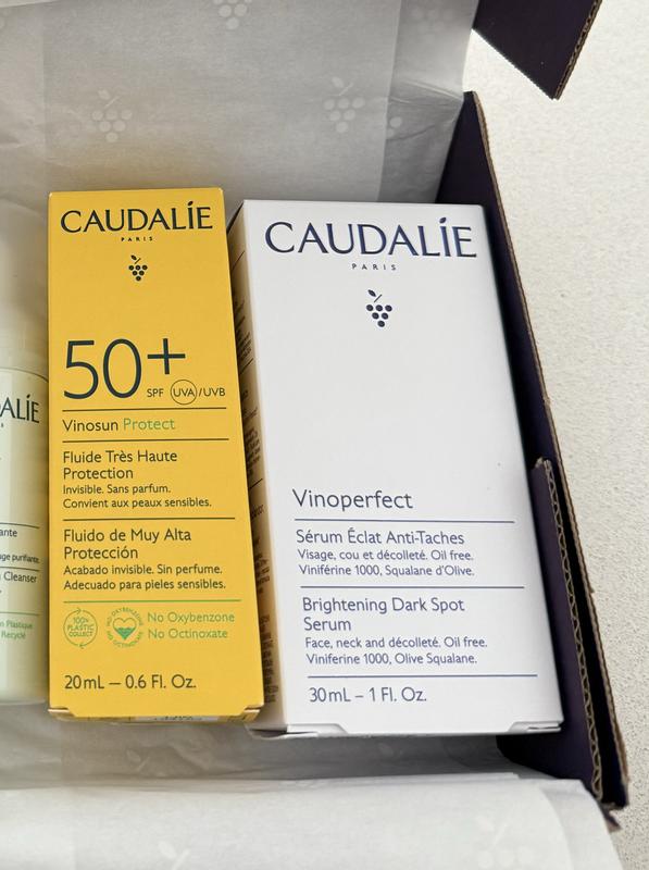 - Viniferina : Ingrediente patenteado da Caudalie proveniente da seiva da videira, tem uma ação antimanchas excecional 62 vezes* mais eficaz do que a vitamina C e 43% mais eficaz do que a Niacinamida 10%**. *Teste in-vitro da ação inibidora da Viniferina sobre a tirosinase. **Teste ex-vivo sobre a quantidade de melanina na epiderme.